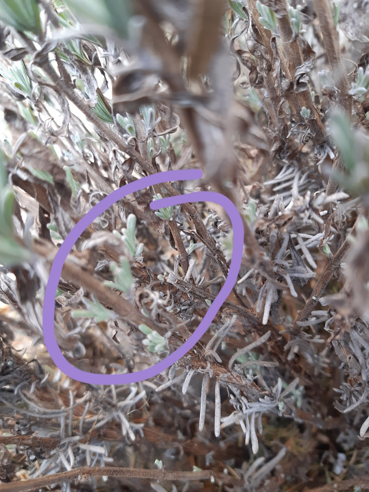 STŘIH: keřík levandule ,, rozhrneme“ a zjistíme, zda již má na starém dřevě viditelné nové pupeny.